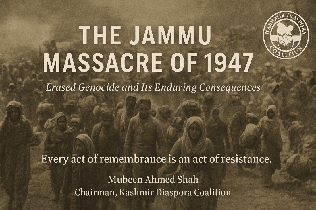 As the Kashmir Diaspora Coalition, we call upon international human rights institutions, scholars, and governments to recognize November 6 as the Jammu Massacre Memorial Day- a day of remembrance and reflection on the cost of silence.